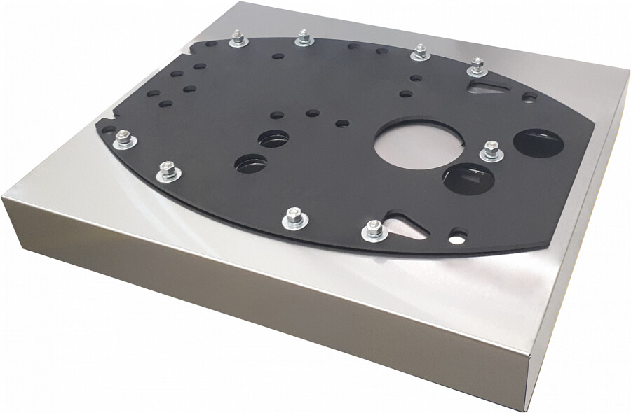 По сравнению с версией в золоте той же серии отличается серебристой отделкой, ориентированной на строгий технический стиль. В отличие от крепежной пластины, рассчитанной на более легкие задачи, это полноценная опора с увеличенной массой и объемной конструкцией для максимальной устойчивости. Такой подход делает модель удобной для задач, где важна безопасная фиксация и аккуратный внешний вид.