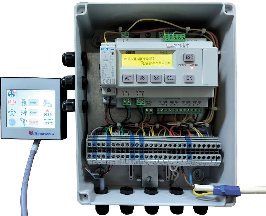 Компактный контроллер для централизованного мониторинга и дистанционного управления промышленными воздушно‑тепловыми завесами. Устройство работает по открытому протоколу Modbus RTU поверх шины RS‑485, что упрощает интеграцию в существующие системы диспетчеризации и BMS. Повышенная пыле‑ и влагозащита корпуса IP55 позволяет устанавливать оборудование в технических помещениях и на объектах с тяжелыми условиями эксплуатации. В составе устройства используется программируемый контроллер Zentec M120‑2B0, обеспечивающий сбор и обработку телеметрии в реальном времени. Для объектов, где завесы не оснащены платой PCB‑AC, устройство может применяться как готовое решение для удаленного контроля. В отличие от подключаемых блоков типа Блок‑E, предназначенных лишь для ввода внешних термостатов и концевых выключателей, данная модель обеспечивает полноценную диспетчеризацию с передачей статусов и команд на верхний уровень. Эти особенности снижают энергозатраты, упрощают сервис и повышают надежность эксплуатации крупных узлов воздушной тепловой защиты.