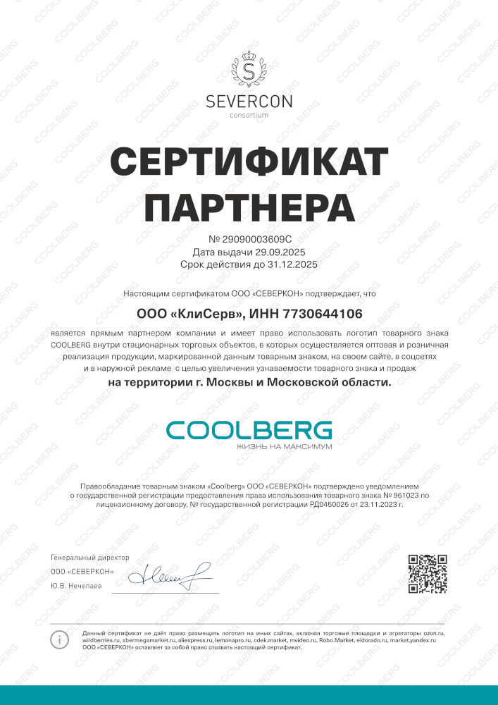 Сертификат дилера Coolberg