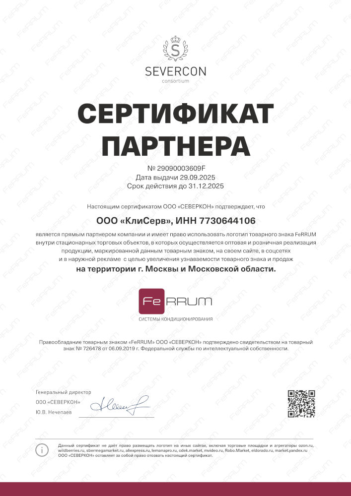 Сертификат дилера Ferrum