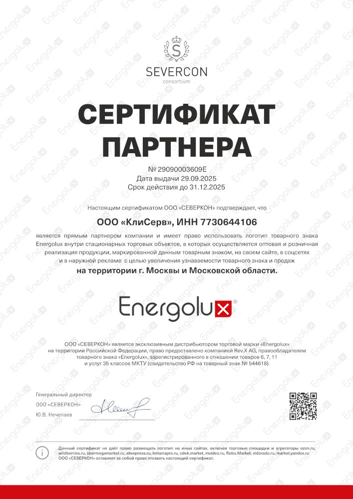 Сертификат дилера Energolux
