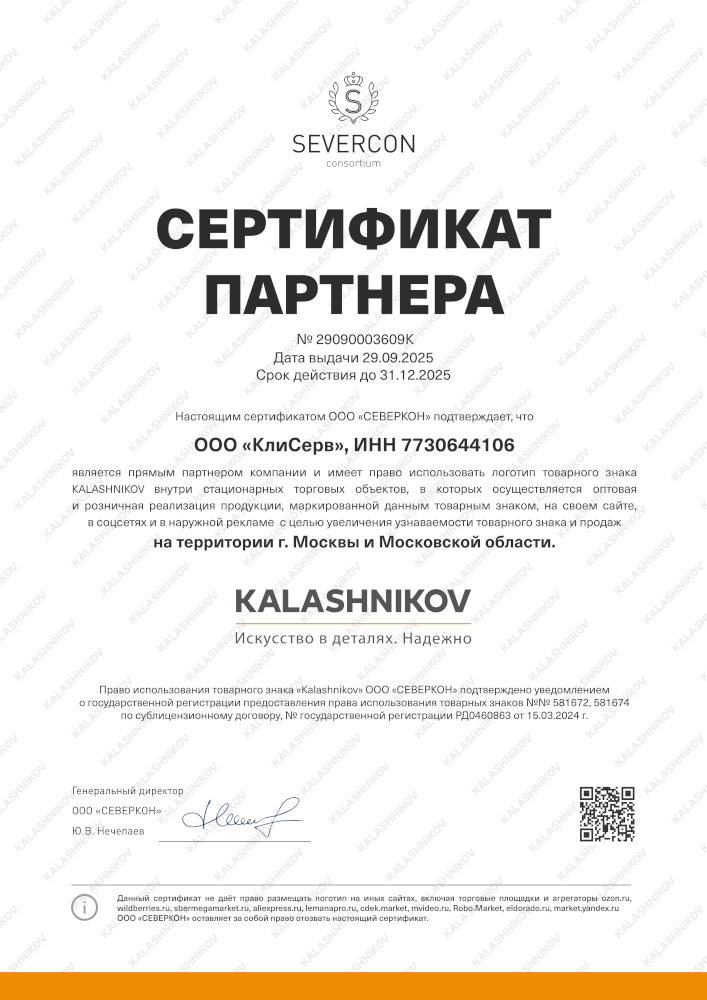 Сертификат дилера Kalashnikov