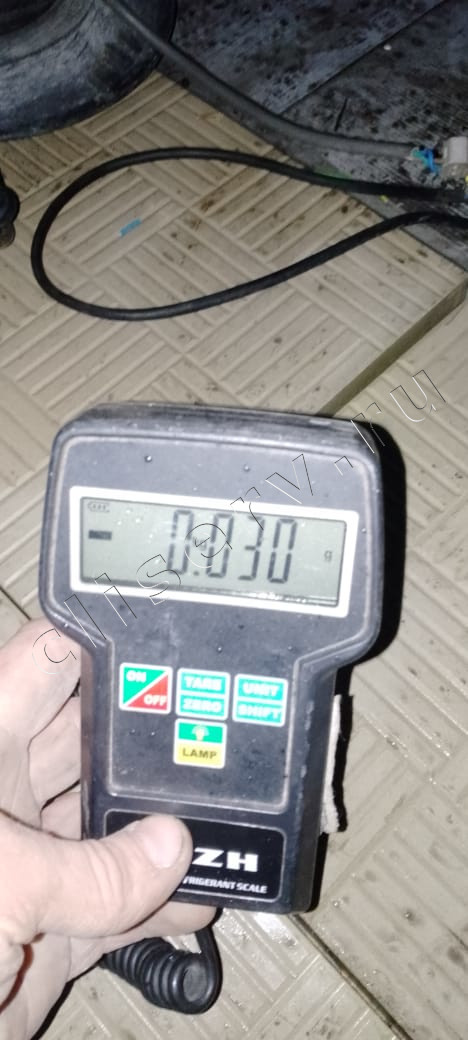 - Выполнили корректировку заправки хладагента с контролем количества по электронным весам (по фото фиксируется процесс дозаправки).