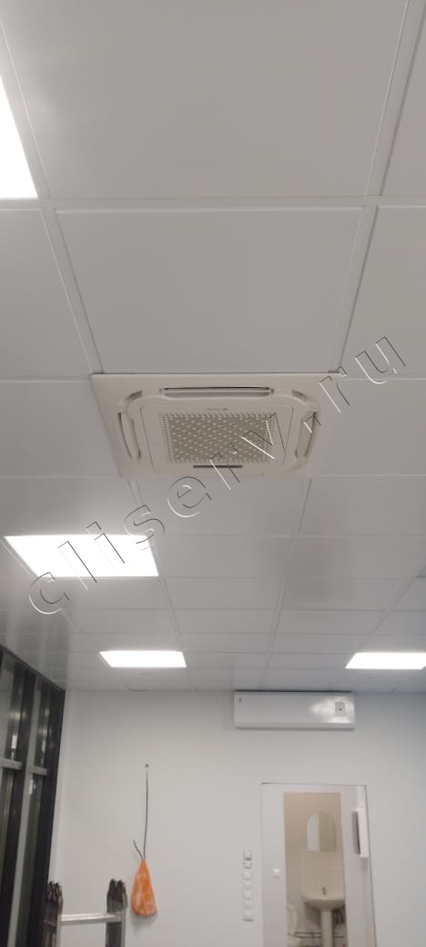 В аптеке установлено несколько единиц климатического оборудования: кассетный внутренний блок в потолке «Армстронг» и настенная сплит‑система, с наружными блоками, размещёнными на кровле на опорных рамах. Работы проводились в формате ТО/сервисного выезда для обеспечения стабильной работы в торговом помещении.