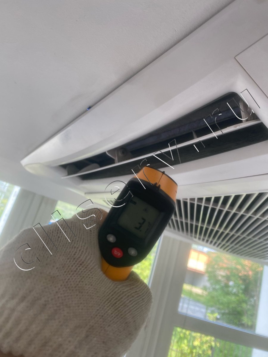 Выполнено обслуживание кассетной сплит-системы. Сделана диагностика, пайка труб, вакуумирование системы, полная заправка фреоном.
